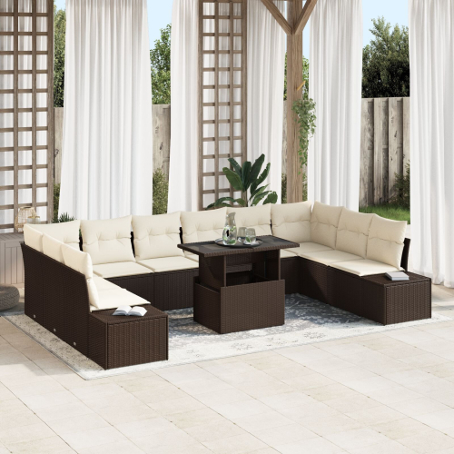 vidaXL Zestaw Sof Ogrodowych 11 Elementów Brązowy i Kremowy