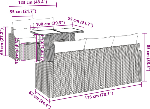vidaXL Zestaw Sof Ogrodowych 6 Elementów z Poduszkami Beżowy Polirattan