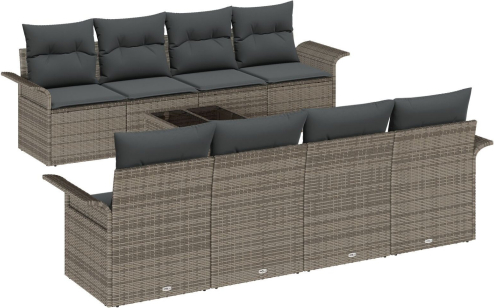 vidaXL Zestaw Sof Ogrodowych 7 Elementów Szary Rattan, Poliester