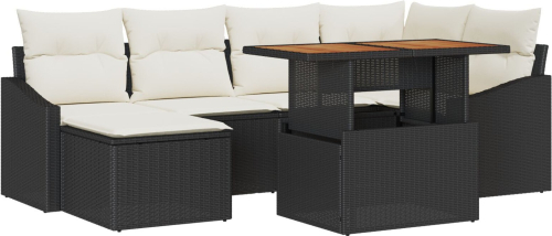 vidaXL Zestaw Sof Ogrodowych 7 Elementów z Poduszkami Czarny Rattan PE