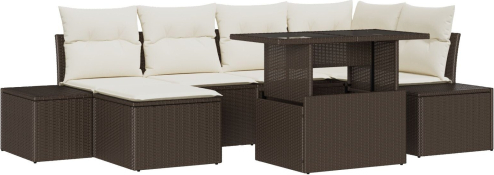 vidaXL Zestaw Sof Ogrodowych 7-elementowy Beżowy Rattan Narożna Sofa