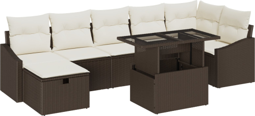 vidaXL Zestaw sof ogrodowych 8-elementowy z poduszkami Brązowy Rattan