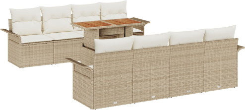 vidaXL Zestaw sof ogrodowych 9-elementowy z poduszkami Beżowy Polirattan Akacja