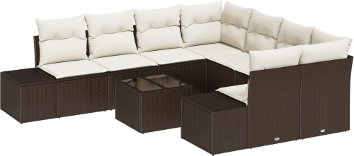 vidaXL Zestaw Sof Ogrodowych 9-elementowy z Poduszkami Brązowy Polirattan