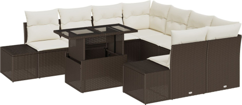 vidaXL Zestaw sof ogrodowych 9 elementowy z poduszkami Brązowy Polirattan