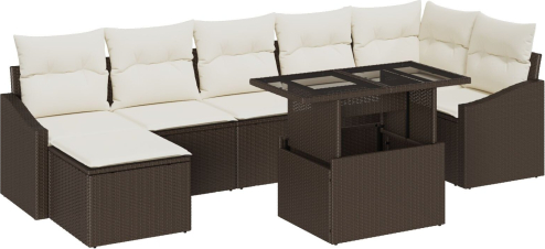 Zestaw Sof Ogrodowych vidaXL 8 Elementów Brązowa baza z beżowymi poduszkami