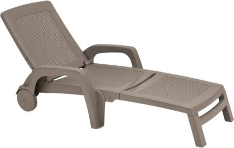 Īpaši elegants, ērts un izturīgs sauļošanās krēsls Miami garantēs ērtu, mierpilnu un relaksējošu atpūtu ar dabisku rotangpalmas pinuma rakstu. Viens no pieprasītākajiem modeļiem profesionālajā sektorā peldbaseinu, atpūtas zonu vai solāriju ierīkošanai. Atzveltnes leņķi ir iespējams regulēt 4 dažādos leņķis, to var regulēt atbilstoši vēlmēm un aktivitātēm. Aiz tā atrodas arī ērts glabāšanas nodalījums. Sauļošanās krēsls Miami ir izgatavots no augstas kvalitātes otrreiz pārstrādājama polipropilēna un stikla šķiedras kombinācijas, izmantojot injekcijas liešanas tehnoloģiju, kas piešķir tam lielu izturību ikdienas lietošanā un noturīgumu pret nelabvēlīgiem laikapstākļiem. Sauļošanās krēsls ir aprīkots ar riteņiem, kas padara to viegli pārvietojamu. Ziemā sauļošanās krēslu vēlams uzglabāt iekštelpās vai izmantot pārsegu, kas palīdz pagarināt krēsla kalpošanas laiku un nodrošina aizsardzību pret skarbajiem laikapstākļiem. Būtisks papildus elements – krēslus var salikt vienu virs otra, kas uzglabājot aizņem maz vietas.