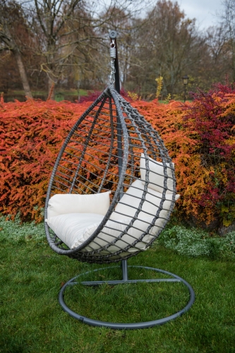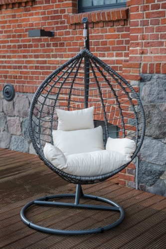 SPESSO iekarināmais krēsls izceļas ar modernu formu un oriģinālu pelēkas pinuma kombināciju ar stilīgiem spilveniem. Spilvenu perfektais maigums veicina svētlaimīgu slinkumu dārzā vai terasē. Galvas balsts nodrošina pareizu galvas atbalstu lasīšanas laikā. Vieglā, ne pārāk blīvā rotangpalmas konstrukcija ļauj izbaudīt vasaras saules starus pēc sirds patikas. Pateicoties tā cietajai tērauda konstrukcijai, atzveltnes krēsls ilgu laiku paliks iecienīta vieta, kur pavadīt laiku ārā. SPESSO krēsla krāsa: