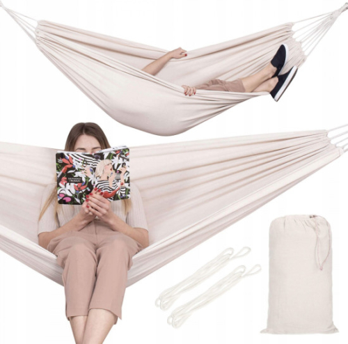 | Interesanta grāmata, skaists laiks un Springos šūpuļtīkls – ideāla kombinācija atpūtai dārzā. Krēmkrāsas šūpuļtīklam ir ideāls izmērs, lai jūs varētu pilnībā relaksēties. Šūpuļtīkla izmērs ir 200 x 150 cm, un tas ir izgatavots no kokvilnas ar poliestera piejaukumu, kas padara to ādai draudzīgu. Elpojošā struktūra nodrošina maksimālu gaisa caurlaidību. Ražotājs ir parūpējies arī par ērtu glabāšanu, nodrošinot funkcionālu pārvalku. Šūpuļtīklu ir viegli uzstādīt jebkurā vietā.