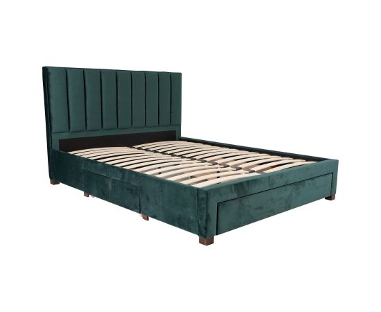 Gulta GRACE ar 3-atvilknēm, bez matrača, 160x200cm, materiāls: mēbeļu tekstils, krāsa: zaļš