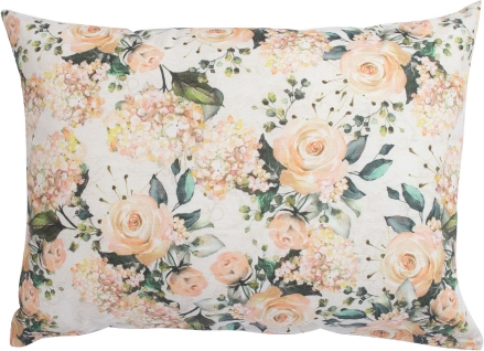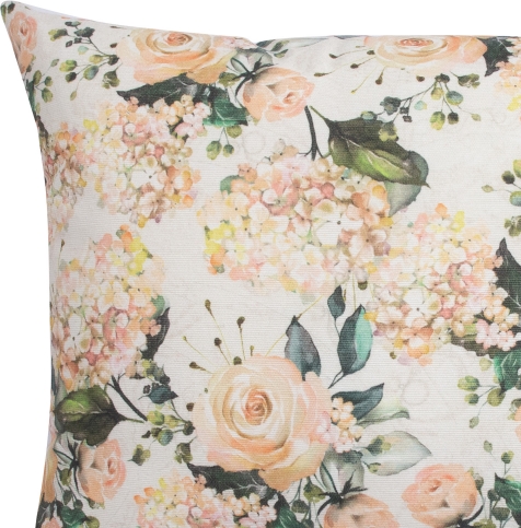 | Pillow LONETA 32x45cm hydrangeas. The fabric has roses and hydrangeas on it and is made of 100% acrylic. The fabric code is 971. The dimensions of the pillow are 32x45cm. | ||||||||