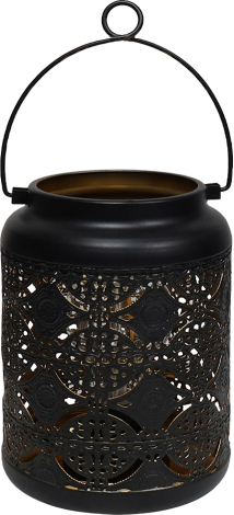 | Stilīga dārza laterna ar rakstainu melnu metāla dizainu radīs mājīgu un dekoratīvu apgaismojumu gan dārzā, gan uz terases vai balkona. Šī laterna aprīkota ar LED apgaismojumu, kas rada patīkamu un atmosfērisku gaismu. Ērts rokturis ļauj to viegli pārvietot vai pakarināt vajadzīgajā vietā, padarot to par lielisku papildinājumu āra vai iekštelpu dekorācijām. Praktiska izvēle svētkiem, vasaras vakariem vai ikdienas lietošanai mājīgai gaisotnei. Izmērs 15 x 15 x 21 cm. Darbojas ar 3 x AA baterijām (nav iekļautas komplektā). |