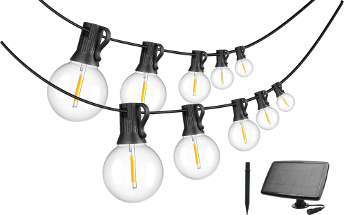 Artflow Dek. lampu virtene ar saules bat.,G40 E12x25gb, 15m, silti b
