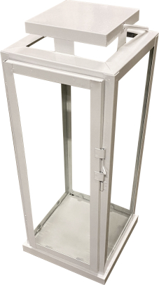 | Balta vienkārša dizaina laterna. Laternu var pakārt uz turētāja vai novietot uz līdzenas virsmas. Tā atveras no sāniem, tas atvieglo sveces nomaiņu. Materiāls - metāls, stikls. Izmērs (G x P x A) 15 x 15 x 37 cm. |