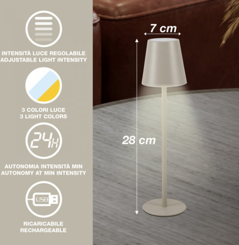 Izgaismojiet savu telpu ar stilu un praktiskumu ar Beper uzlādējamo galda lampu. Ar skārienjutīgu ieslēgšanu un modernu dizainu tā ir ideāli piemērota jūsu rakstāmgaldam, naktsskapītim vai, lai kur jūs to ņemtu līdzi. Vienkāršs pieskāriens ļauj izvēlēties starp siltu, aukstu vai dabisku apgaismojumu, savukārt, turot nospiestu pogu, viegli pielāgo gaismas intensitāti atbilstoši videi un diennakts laikam. Pateicoties integrētajam lieljaudas akumulatoram, tā piedāvā pagarinātu akumulatora darbības laiku. Uzlādējama, izmantojot komplektā iekļauto USB kabeli, tā ir ideāls risinājums tiem, kas meklē funkcionalitāti, kustību brīvību un personalizētu atmosfēru.