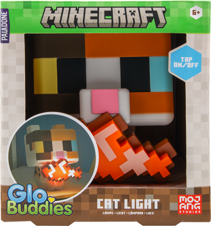 | Pieskarieties, lai ieslēgtu un izslēgtu 15 cm augsta gaisma ar izgaismotu zivtiņu Darbojas ar 2 x AA baterijām (nav iekļautas komplektā) Oficiāli licencēts Minecraft produkts |