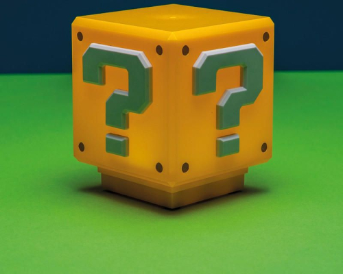 Pacel līmeni un izgaismo savu galdu vai plauktus ar šo Super Mario™ Mini Bloka Gaismu. 11 cm augstā gaisma ir veidota kā ikonisks priekšmets no videospēlēm. Piespied bloku, un tas ieslēgsies, skanot oficiālajai monētas skaņai. Gaismu baro ar 3x AAA baterijām (nav komplektā). Super Mario™ Mini Bloka Gaisma ir lielisks kolekcionējams priekšmets spēlētājiem. Piespied, lai atskaņotu oficiālās skaņas 11 cm augsta gaisma Baro ar 3x AAA baterijām (nav komplektā) Oficiāli licencēts Nintendo® produkts