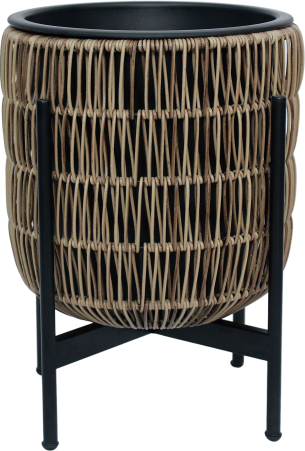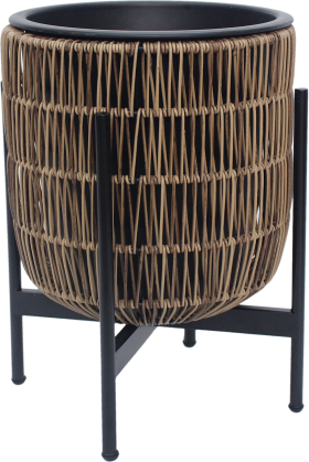 | Puku pods WICKER ar stativu 30x30xH38cm, gaiši bruns. Puku poda metala ramis ir parklats ar plastmasas pinumu. Puku poda izmeri ir D27xH28cm. Plastmasas iekšeja poda izmeri ir D23xH23cm. Iekšejais pods ir bez cauruma. Komplekta ietilpst melns metala pamata ramis. | ||||||||
