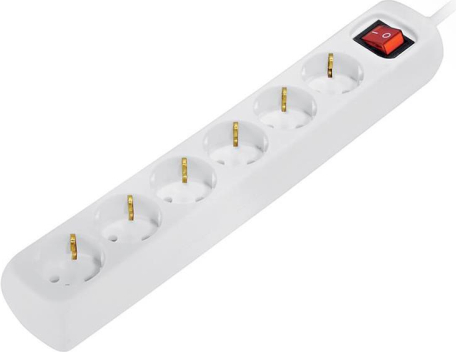 Distribution Panel, 6 sockets, with switch, 1.4 m, white