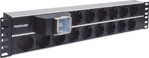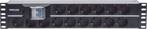 Intellinet 19" 2U Rackmount 15-Output Power Distribution Unit (PDU), EU CEE 7/3 Outlets, With Double Air Switch, Built-in 3 m (10 ft.) Power Cord with EU CEE 7/4 Plug