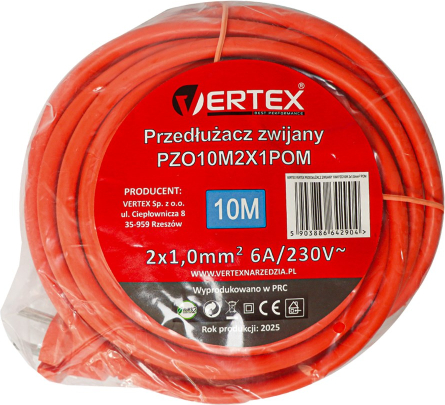 Przedłużacz zwijany 10m, PZO10M2x1,0mm VERTEX