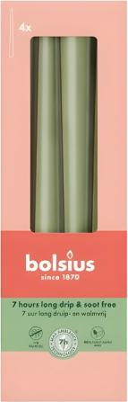 Bolsius Galda sveces 4gab.kastē 245/24mm olīvzaļas