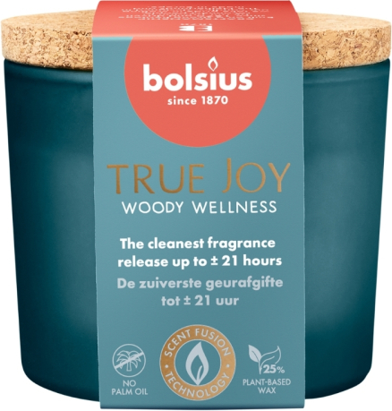 Bolsius Svece arom. stikla gl. ar korķi True Joy Ø66x83mm woody wellness