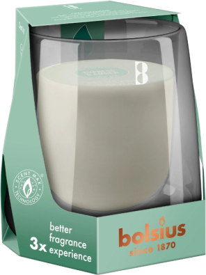 Bolsius Svece arom. stikla gl. Clean Light Ø95x85mm cedarwood & vetiver