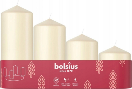 Bolsius Sveces cilindrs 4 gab. Ø120, 100, 80, 60x48mm krēmkrāsas