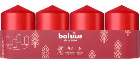 Bolsius Sveces cilindrs 4 gab. Ø60x40mm sarkanas
