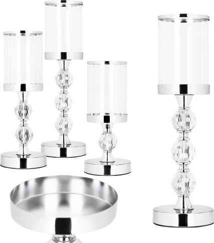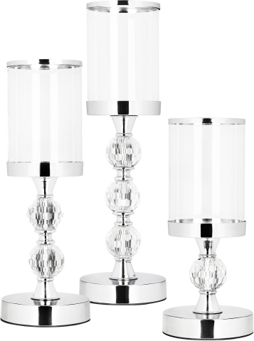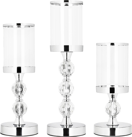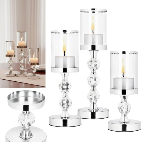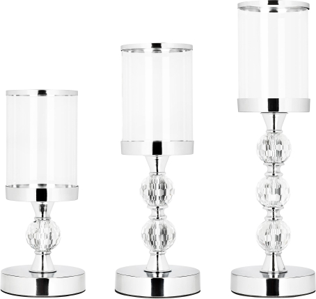 | Pamatinformācija: Zīmols: Springos® Krāsa: sudraba, caurspīdīga Apdare: pusmatēta Materiāls: metāls, stikls, plastmasa Daudzums komplektā: 3 Izmēri: Pamatnes diametrs: 12 cm Kristāla lodītes diametrs: 5 cm Stikla kupola diametrs: 10 cm Stikla kupola augstums: 15 cm Mazā svečtura augstums: 28 cm Vidējā svečtura augstums: 35,5 cm Lielā svečtura augstums: 41 cm Papildu informācija: Produkts paredzēts pašmontāžai Pamatne nesaskrāpē mēbeles |