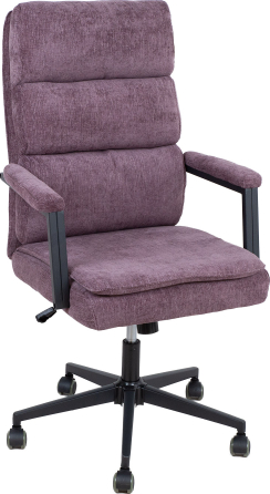 | Task chair REMY violet. The soft upholstered seat and backrest of the chair are covered with soft and durable chenille fabric. The chair has a butterfly mechanism and pneumatic seat height adjustment. The black metal armrests have soft padding. The 5-pronged base is made of metal and finished with black powder paint, R32cm. The chair has floor-saving PU-coated castors. The overall dimensions of the chair are 65x72xH108-115cm. Seat width 50cm, seat depth 47cm, seat height 49-56cm. The height of the armrests from the seat is 20cm. Weight limit 120kg. | ||||||||