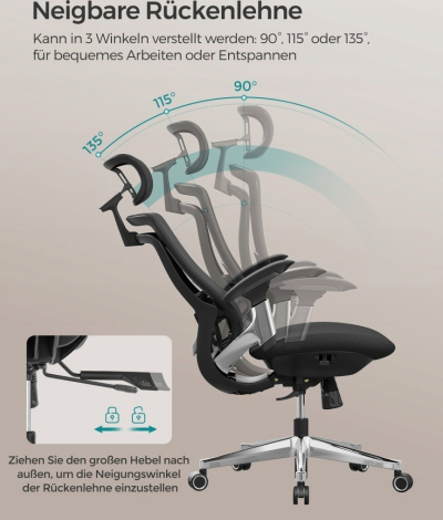 Krzesło biurowe Songmics Ergonomiczne regulowane krzesło biurowe rozkładane biurko - przednie lub tylne regulowane siedzenie - Obsługa do 150 kg - Black