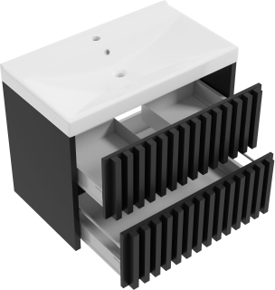 1. Krāsa – melna 2. Materiāls - Laminats 3. Keramiska izlietne komplektā 4. Mēbeles pardoddas izjaukta veidā 5. Komplektā 2 pakas