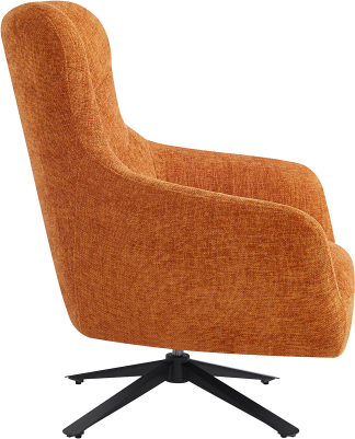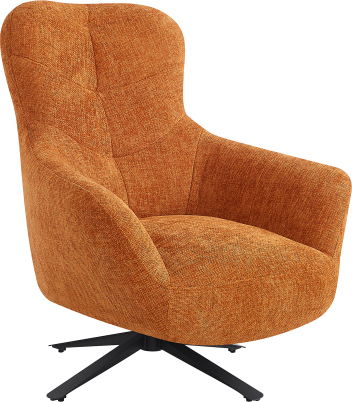 Atpūtas krēsls HELGA karamele. Elegants atpūtas krēsls ar maigām līnijām, kas izstaro aicinošu šarmu un ātri iekaro sirdi, pateicoties lieliskajam komfortam. Pārdomāts dizains un rūpīgi atlasīti augstas kvalitātes materiāli nodrošina mūžīgu un izturīgu rezultātu, kas nemanāmi saplūst ar dažādiem stiliem un telpu dekoriem. Krēsls griežas par 360°, nodrošinot ērtu piekļuvi un skatu uz apkārtni bez nepieciešamības piecelties kājās. Atzveltnes krēsla rāmis ir izgatavots no metāla, un tajā ir atsperu bloks sēdekļa iekšpusē. Polsterējums ir izgatavots no augstas kvalitātes poliuretāna putām ar blīvumu 18/24/26 kg/m³. Atzveltnes krēsls ir pārklāts ar mīkstu poliestera audumu. Izturīgā tērauda 4 kāju pamatne ir pārklāta ar melnu pulvera pārklājumu. Krēsla kopējie izmēri ir 89x90xH99cm. Sēdekļa platums 48cm, sēdekļa dziļums 53cm, sēdekļa augstums 43cm. Roku balsta augstums no zemes ir 61cm. Svara ierobežojums 200kg.