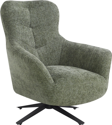 Atpūtas krēsls HELGA zaļš. Elegants atpūtas krēsls ar maigām līnijām, kas izstaro aicinošu šarmu un ātri iekaro sirdi, pateicoties lieliskajam komfortam. Pārdomāts dizains un rūpīgi atlasīti augstas kvalitātes materiāli nodrošina mūžīgu un izturīgu rezultātu, kas nemanāmi saplūst ar dažādiem stiliem un telpu dekoriem. Krēsls griežas par 360°, nodrošinot ērtu piekļuvi un skatu uz apkārtni bez nepieciešamības piecelties kājās. Atzveltnes krēsla rāmis ir izgatavots no metāla, un tajā ir atsperu bloks sēdekļa iekšpusē. Polsterējums ir izgatavots no augstas kvalitātes poliuretāna putām ar blīvumu 18/24/26 kg/m³. Atzveltnes krēsls ir pārklāts ar mīkstu poliestera audumu. Izturīgā tērauda 4 kāju pamatne ir pārklāta ar melnu pulvera pārklājumu. Krēsla kopējie izmēri ir 89x90xH99cm. Sēdekļa platums 48cm, sēdekļa dziļums 53cm, sēdekļa augstums 43cm. Roku balsta augstums no zemes ir 61cm. Svara ierobežojums 200kg.