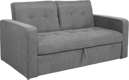 Sofa bed JORGE 2-seater, grey. The pop-up sofa bed is a good solution for creating additional sleeping space. To open the sofa, pull out the extension placed under the seat and lift it to the same level as the seat. The backrest moves up and down using the click-clack mechanism and can be fixed in three positions. Before placing the backrest in a horizontal position, open the zipper pockets on the back of the backrest and pull out the metal support legs. The sofa bed is intended for use as a guest bed rather than as an everyday sleeping place. Always use a mattress topper. The sofa is covered with polyester fabric. The frame of the sofa is made of solid wood. The pull-out mechanism is made of metal. The seat base is supported by zig-zag springs. Inside the seat cushion, there is a pocket spring block and foam padding. The overall dimensions of the sofa are 164x90x86cm. |