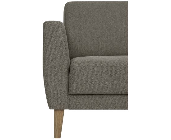 | Sofa LANDO 2-seater, beige. The fixed seat cushions are covered with 130g/m2 polyester fabric. The cover is not removable. The seat cushions are made of 20mm 35kg/m3 and 80mm 35kg/m3 foam. The backrest cushions are reversible and the covers are removable. The backrest cushions are covered with 300g/m2 polyester fabric. The backrest cushions are made of 125mm 15kg/m3 foam. The frame is made of solid wood, plywood, hardboard and chipboard. The frame is covered with 6mm 20kg/m3 foam. The top part of the armrests is covered with 30mm 35kg/m3 foam and with 130g/m2 polyester fabric. The sofa has four square legs made of wood. The color of the legs is smoked oak. The dimensions of the legs are 5,5x3,5xH16cm. The dimensions of the product are 158x89xH80cm. |