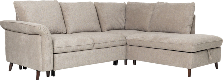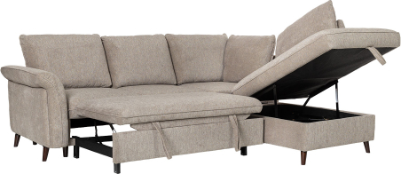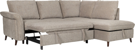 Stūra dīvāngulta LINDY ar uzglabāšanas vietu, labais stūris, gaiši brūna. Dīvāns ir izvelkams un nepieciešamības gadījumā var tikt izmantots kā gulta. Lai atvērtu, izvelciet zem sēdekļa esošo pagarinājuma daļu un paceliet to vienā līmenī ar sēdekli. Dīvāngulta paredzēta lietošanai kā viesu gulta, nevis kā ikdienas guļvieta. Vienmēr izmantojiet matrača virsmatraci. Zem dīvāna stūra ir ietilpīgs uzglabāšanas nodalījums. Pārvalka materiāls: poliestera audums. Rāmis un atbalsts: koks, saplāksnis. Kabatas atsperes. Apdare: poliuretāna putas 28kg/m³. Brīvie atzveltnes spilveni ir pildīti ar poliestera šķiedru. Dīvāna kopējie izmēri: 242x93/197xH94cm. Sēdekļa platums 187cm, sēdekļa dziļums 55/166cm, sēdekļa augstums 49cm. Roku balstu augstums no zemes 70cm. Dīvāna augstums līdz rāmja malai 77cm. Guļamvietas izmēri atvērtā veidā 136x200cm. Dīvānam ir tumšas plastmasas kājas, augstums 11 cm. |