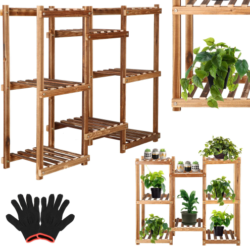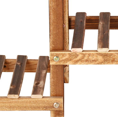 | Zīmols: Springos Materiāls: koks Krāsa: brūni toņi, vecināts efekts Līmeņu skaits: 5 Vietu skaits puķu podiem: 8 Izmēri: Maksimālais augstums: 70 cm Platums: 85 cm Līmeņu augstumi: 5 cm / 15 cm / 37 cm / 59 cm / 69 cm Kopējais dziļums: 25 cm Plauktu līmeņu garums: 25 cm Attālums starp kāpnēm: 2,5 cm Plauktu pakāpienu biezums: 8 mm Plauktu kāpņu platums: 23 mm Galveno konstrukcijas elementu biezums: 27 x 15 mm Izmēri plauktu skaits: 21 x 25 cm Pašmontāža: jā Montāžas instrukcija: ir Papildinformācija: noapaļota, piezemēta redeļu mala Ļoti viegla konstrukcija, neskatoties uz izmēru |