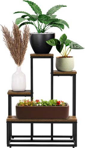 Metāla puķu statīvs Springos GA0210 67 cm ar 4 plauktiem, bēniņu tipa, daudzlīmeņu, moderns