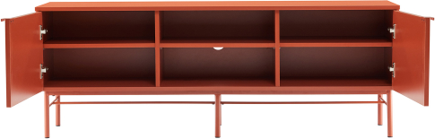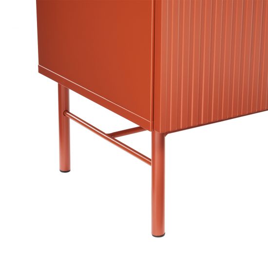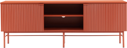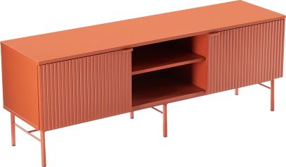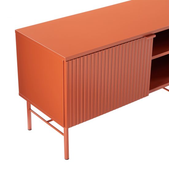 TV galds SEQUENCE ar 2 durvīm un atvērtu plauktu 150x40xH55cm, rudens brūns. Televizora korpuss ir izgatavots no MDF plātnes. Svītraini durvju paneļi ar reljefu virsmu piešķir izstrādājumam unikālu un modernu izskatu. Televizora galds ir pārklāts ar izturīgu poliuretāna krāsu. Metāla pamatnes rāmis un kājas ir pārklāts ar pulverkrāsu.