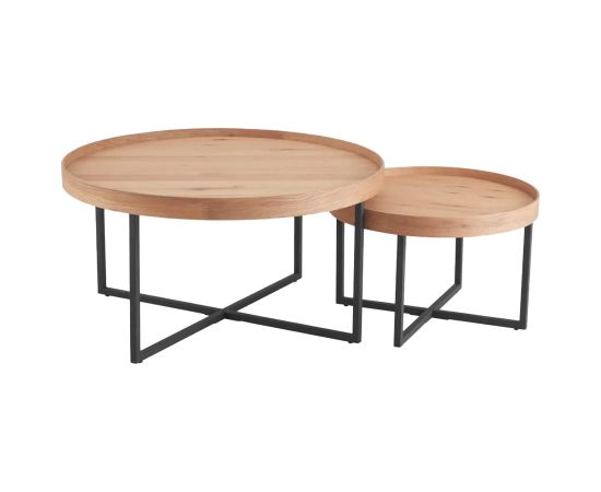 Kafijas galdiņš MUSIC 2gab komplekts D60xH38, D90xH46, ozols. Galda virsma un mala izgatavota no ozolkoka saplākšņa. Galda melnā tērauda kāja ir ar emaljas apdari.
