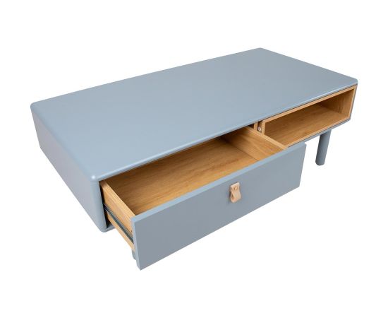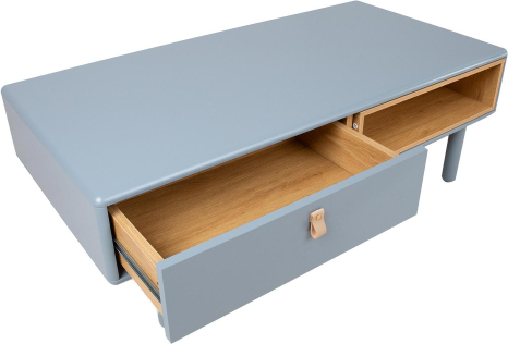 Kafijas galdiņš IRIS ar 2 atvilktnēm un 2 plauktiem 120x60xH40cm, balts. Galds izgatavots no 18mm MDF plātnes. Kājas un pamatnes rāmis ir izgatavoti no masīvkoka. Kafijas galdiņš ir pārklāts ar izturīgu poliuretāna krāsu. Atvilktnēm ir ādas rokturi. Atvērtais starpplaukts ir izklāts ar gaišu koka krāsas dēli. Kafijas galdiņam ir noapaļotas ārējās malas.