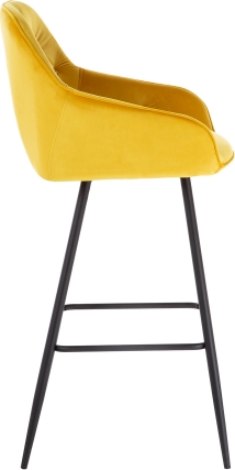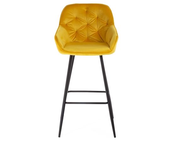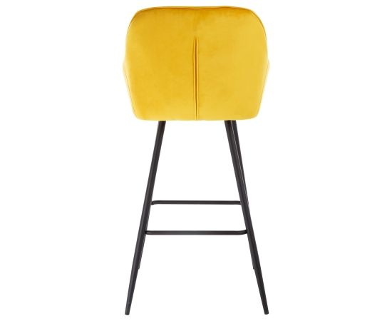 | Bāra krēsls BRITA, dzeltens samts. Ērtas formas izliekta saplākšņa sēdeklis ir viegli polsterēts un pārklāts ar samta audumu. Pārvalka materiāls: 100% poliesters, 260g/m². Martindale 25 000. Krēsla kājas un rāmis ir izgatavoti no metāla un apdarināti ar melnu pulverkrāsojumu. Krēsla izmēri 53x55xH109cm, sēdekļa augstums 75cm. Maksimālais svars 120kg. | ||||||||