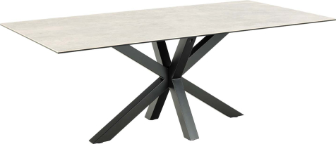 | Contemporary dining table with bold character. Grey shades of the table top give the table a light expression. The table top is made of heat and scratch-resistant ceramic. Sculptural crossed metal base in black provides stability. The table comfortably seats 8 people. The dimensions of the item are 200x100xH75,5cm. | ||||||||