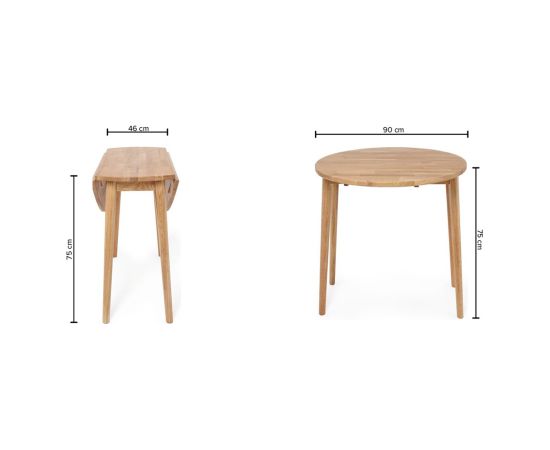| Drop leaf table BIRKA D90xH75cm, light oak.