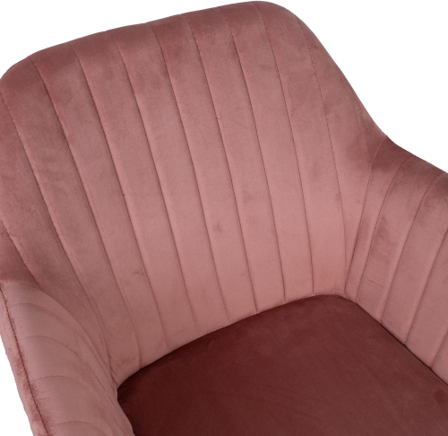 | Kresls EVELIN 60x57xH82cm, roza. Erts sedeklis, viegli polsterets un pilniba parklats ar samta audumu. Materials: 100% poliesters, Martindale 25 000. Sedekla ramis: metals un saplaksnis. Polsterejums: poliuretana putas. Metala kajas ar melnu pulvera parklajumu. Maksimalais svars 120kg. | ||||||||