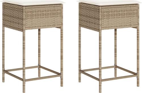 vidaXL Ogrodowe stołki barowe z poduszkami, 2 szt., beżowe, polirattan