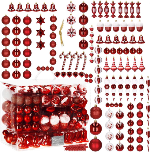 Ziemassvētku eglīšu rotājumu komplekts Springos CA0155, 6/8/14 CM, 149 gab.